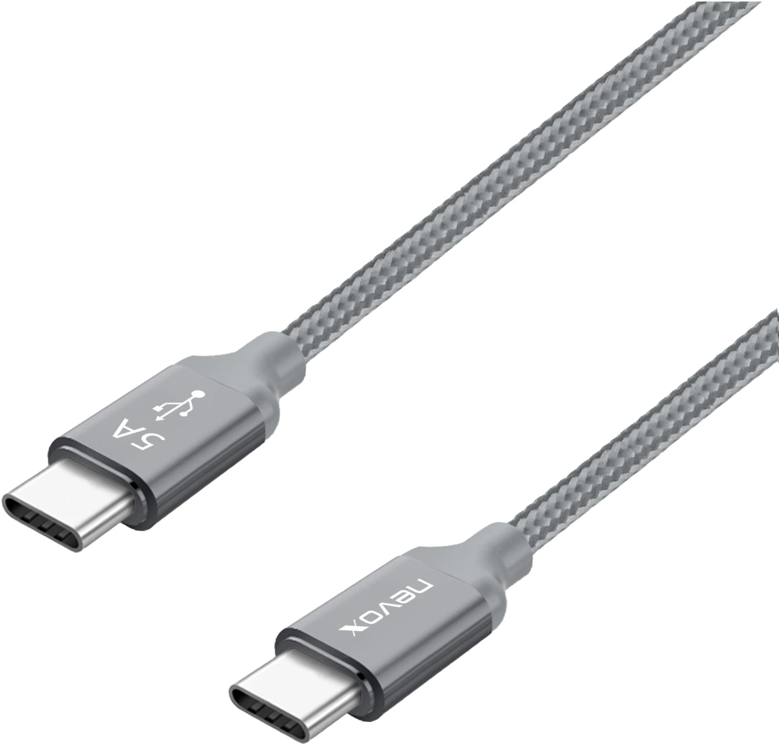 Nevox 2 m USB-C zu USB-C 2,0 Kabel 20V/5A (100W) Emark IC Silber Grau